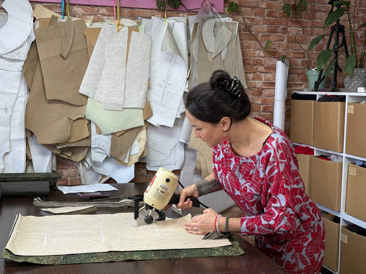 После прекращения поставок материалов из-за рубежа Ирина сделала ставку на отечественные материалы. Сегодня она разрабатывает собственные принты, которые наносятся на ткани с использованием современных технологий, благодаря чему создаются уникальные вещи.